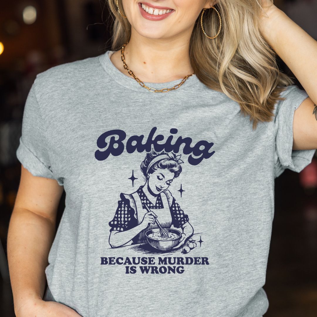 This shirt makes a perfect gift for true crime fans or anyone who is known for their love of baking or their limited patience with humanity!