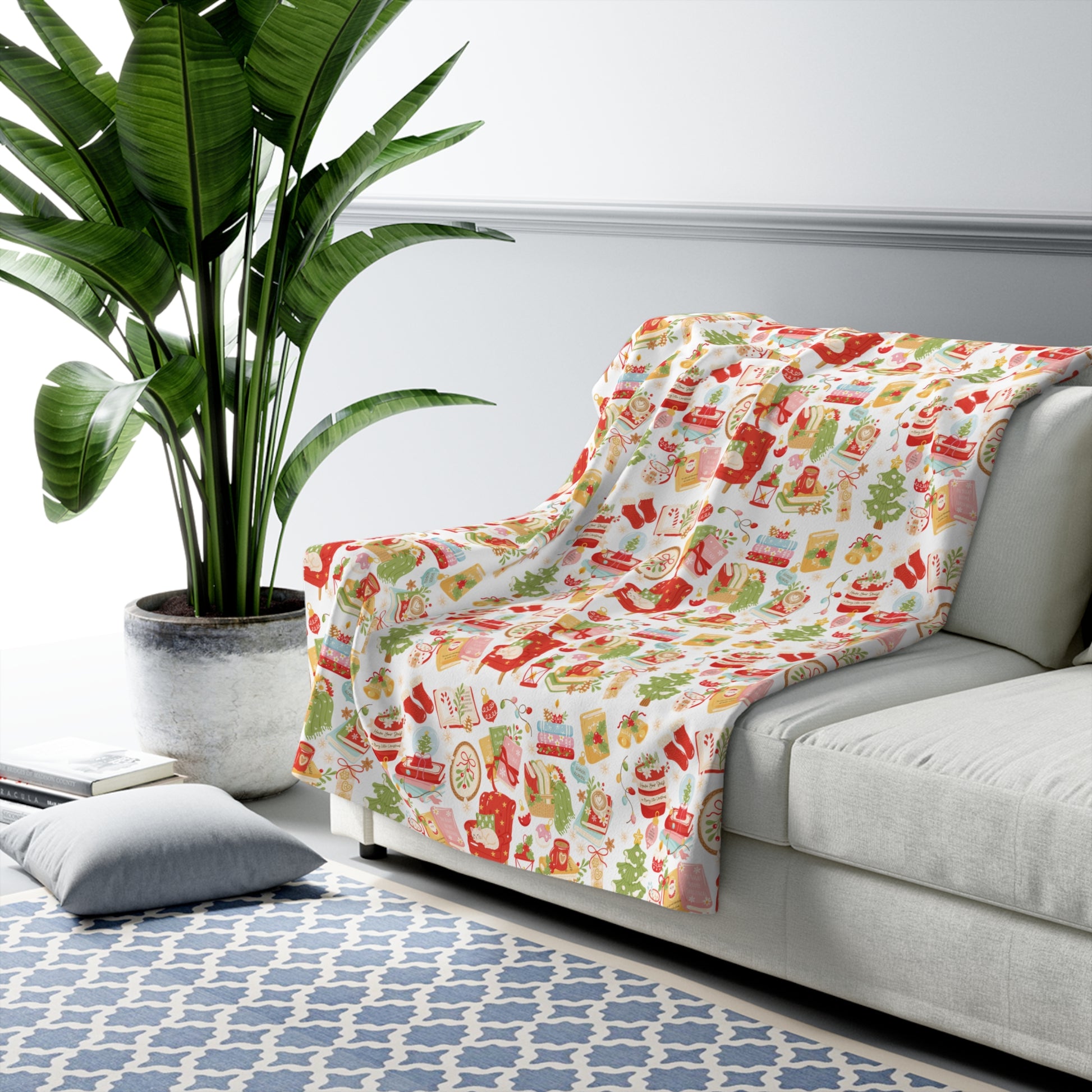 This blanket is created from a print that homebodies and readers will adore. This beautiful, comfy sherpa blanket is perfect for snuggling down and getting lost in a good book! One side is is printed with an illustrated print, and the other side is made of a soft sherpa fleece. Makes a great gift for anyone who enjoys cozy season!