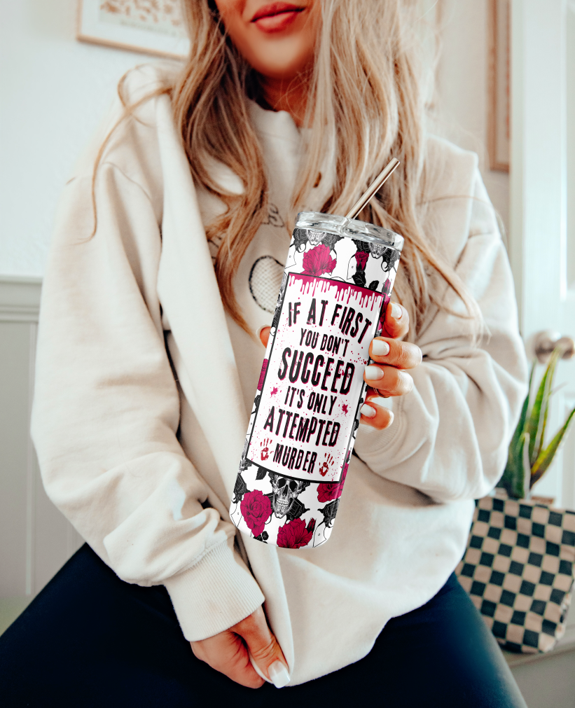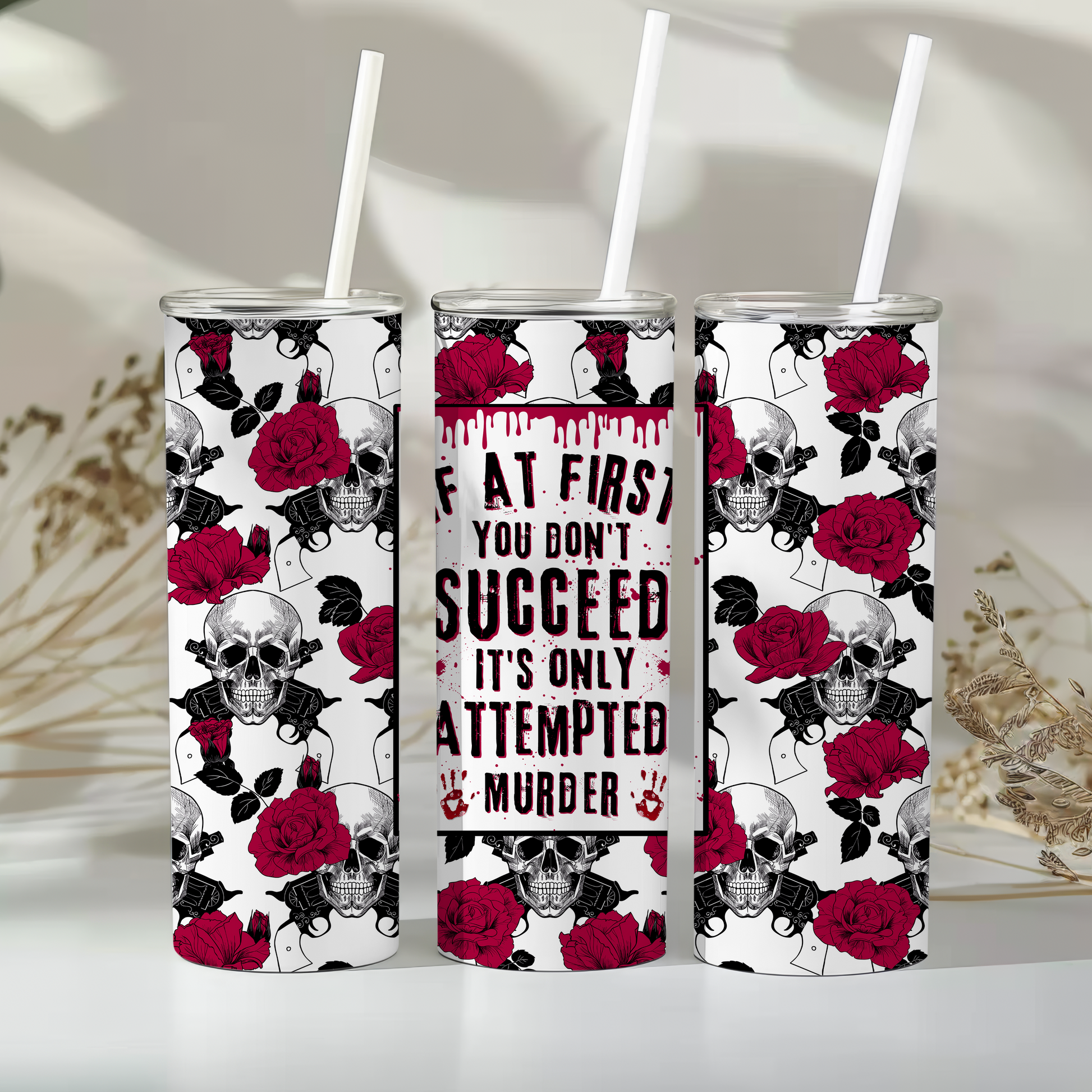Only Attempted Murder Tumbler - Skull & Roses True Crime Cup