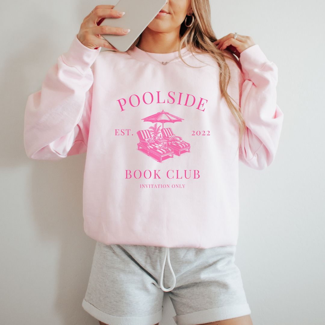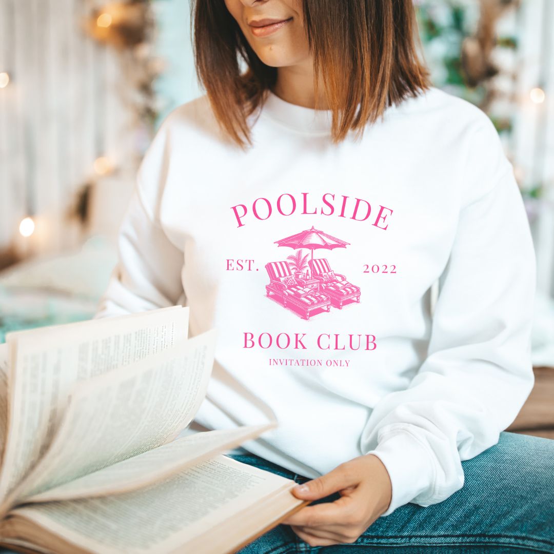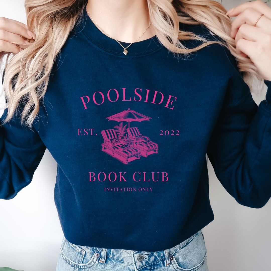 Get ready to love your new "Poolside Book Club" sweatshirt. This preppy tee, with it's social club old money vibe is sure to become a staple in your summer wardrobe. Also makes a great gift for your favorite bookworm!