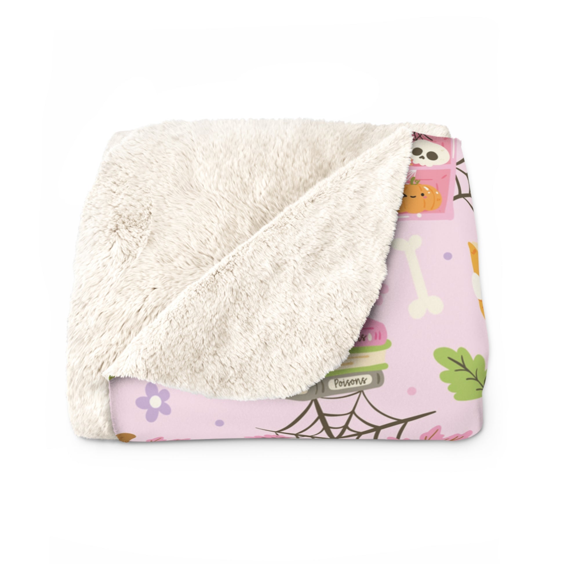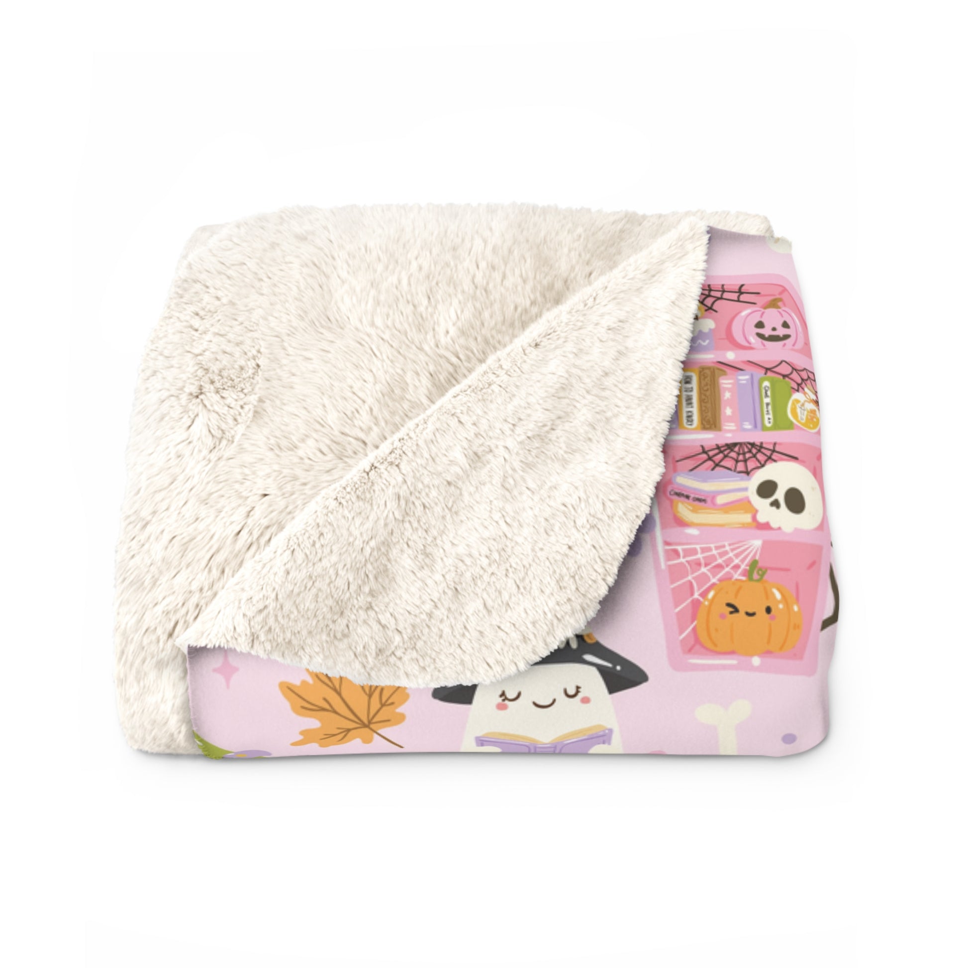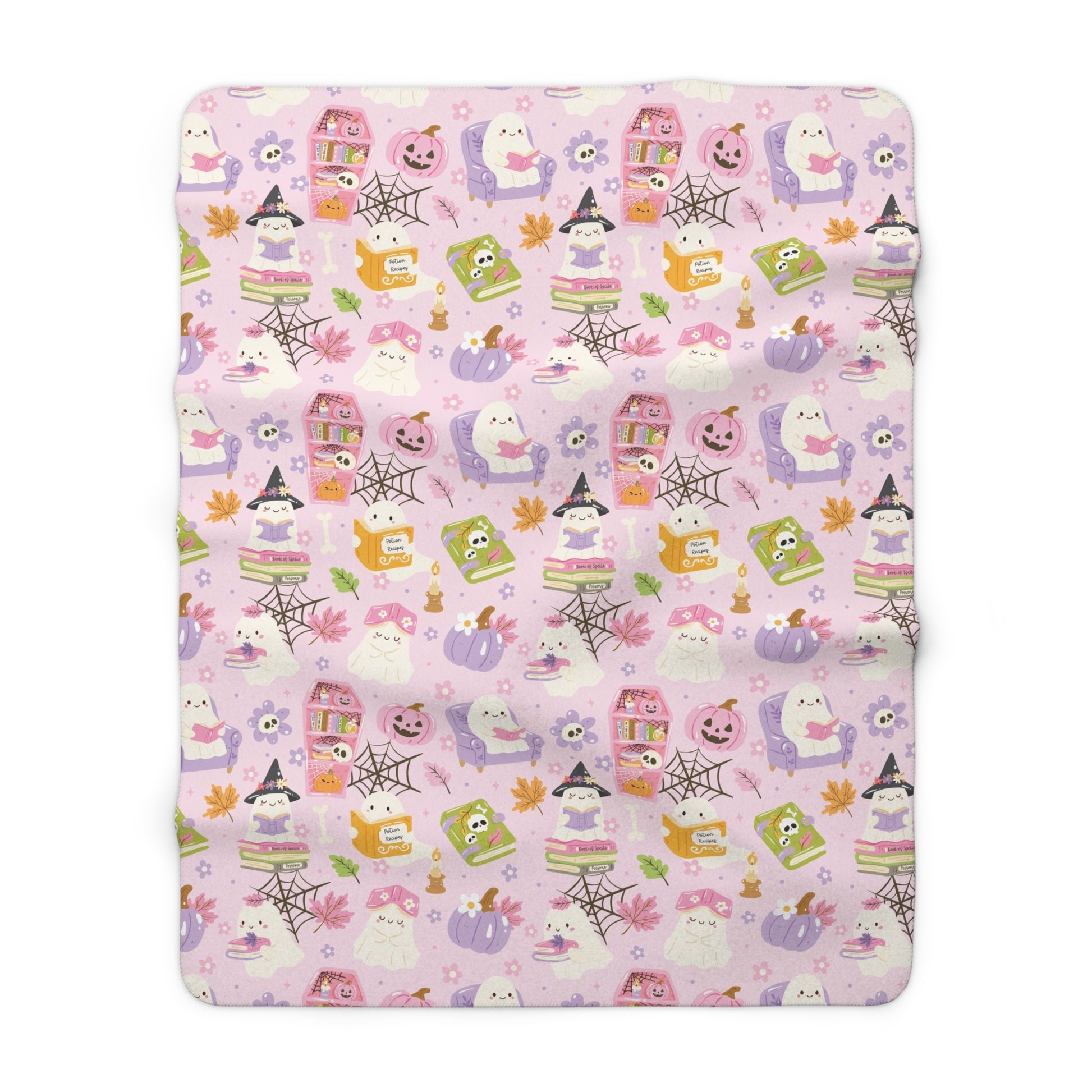 This lovely, soft sherpa blanket is perfect for a nice, long reading session in your comfiest spot. One side is is printed with cute illustrated print, and the other side is made of a lluxurious sherpa fleece. Makes a great gift for those who love all things spooky!