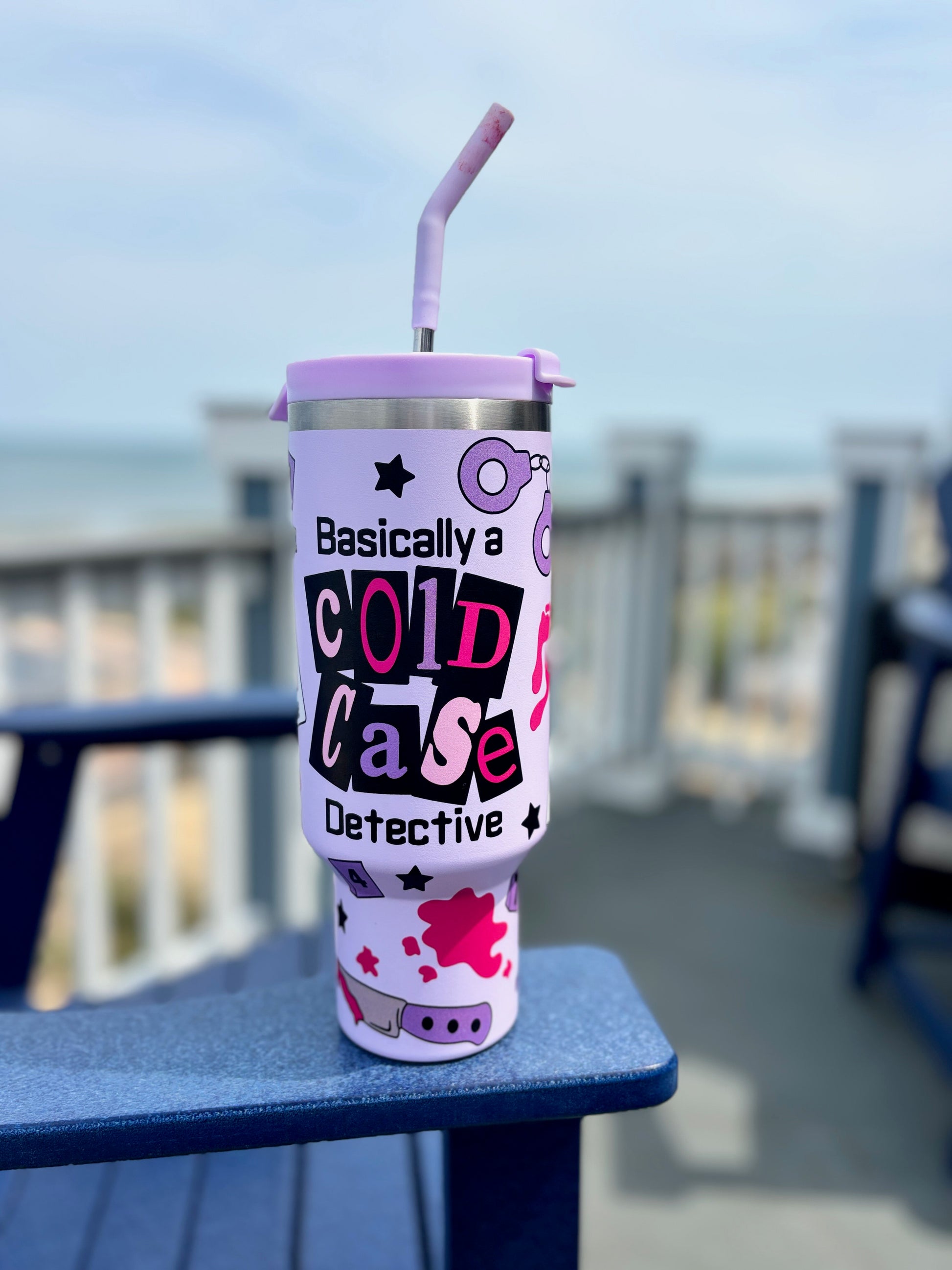 This 40 oz. tumbler was made for the true crime fan who lives on caffeine, late-night theories, and endless episodes.